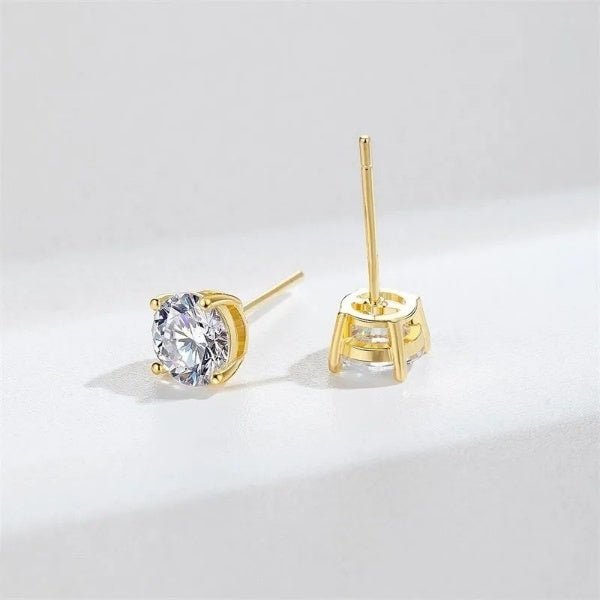 עגילי סוליטר - זהב לבן/צהוב 18K כולל סוגר 18k